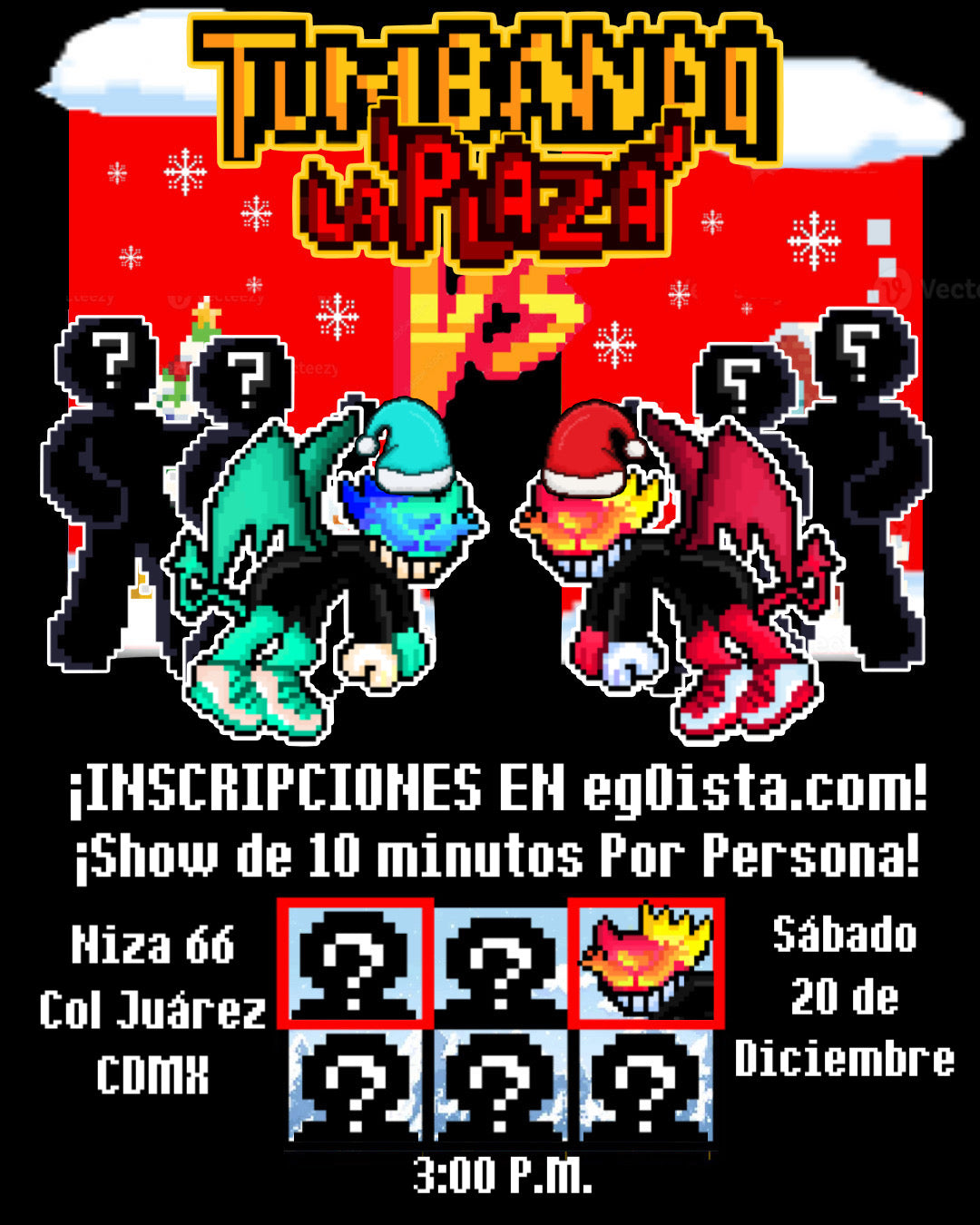 El show será en la parte principal de la plaza con los visuales de Egoísta mientras cantas sobre la tarima especialmente armada para ese día.